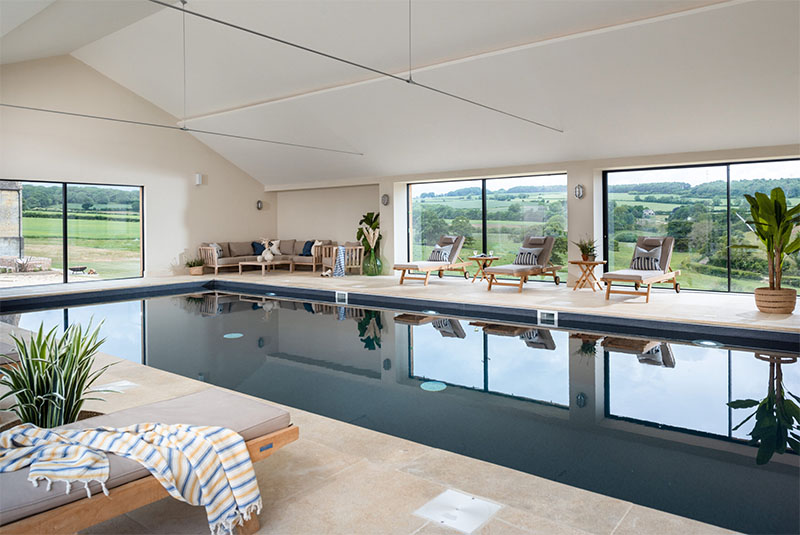 Our home for the weekend is the beautiful Anthology Farm. One of the most sought after private wellness spaces in the Cotswolds set in a pretty village with expansive views across the valley. It will be our own private estate with yoga studio, indoor heated pool, cinema room and tennis court. Inside, expect to find stunning spaces and bedrooms, styled in luxury Scandi chic. You won’t want to leave!
